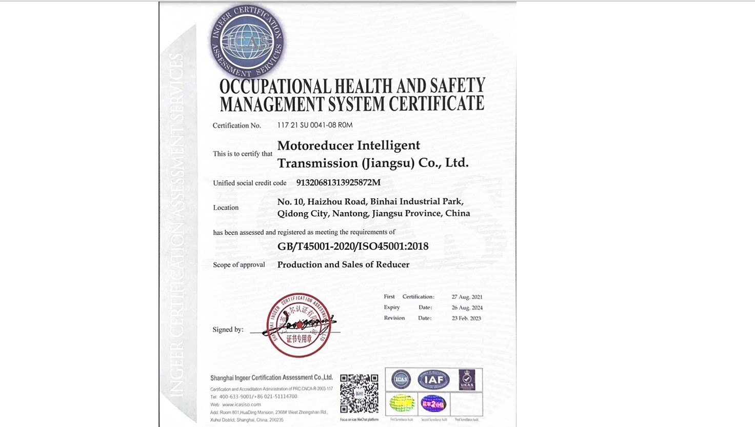 With the growth of the company, the company moved to Qidong new factory in 2020, together with a team of employees with many years of working experience. Now, Motoreducer Intelligent Transmission (Jiangsu) Co., Ltd. Based in Qidong, Jiangsu, China has set up perfect standard production and assembly lines together with suitable quality assurance system